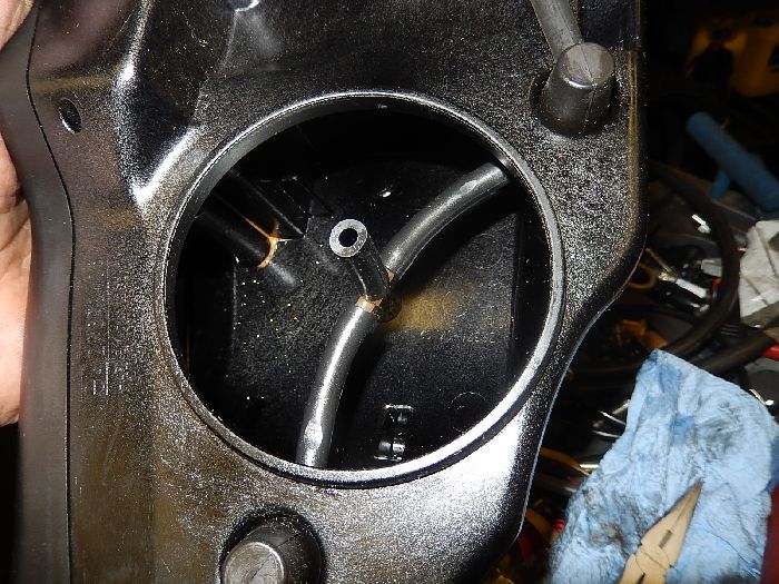 XR1200, Service , the bike was leaking watter and oil out off the air filter, the breather hose was not correctly in position so the breathers condensation was accumulating in the airfilter box.