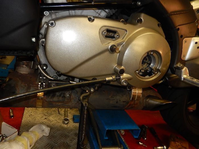 Buell XB12SS 2008, putting back the engine, clutch cable routed to the handle bar , and adjusted.